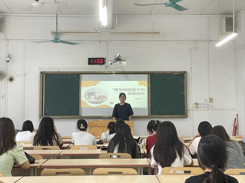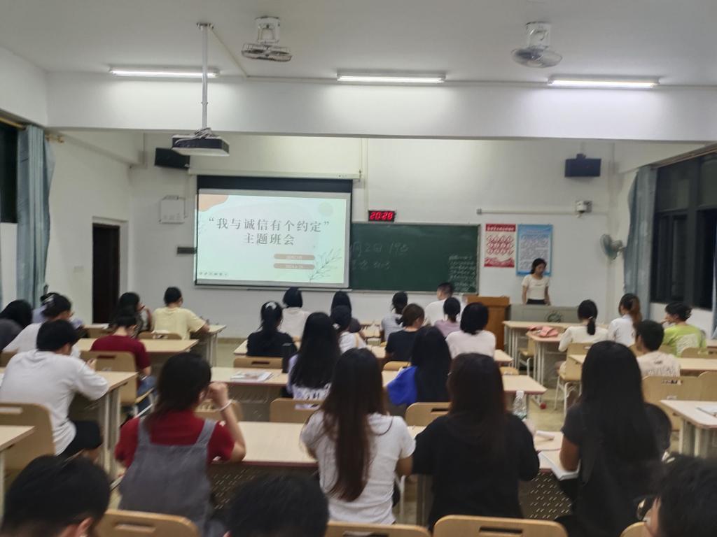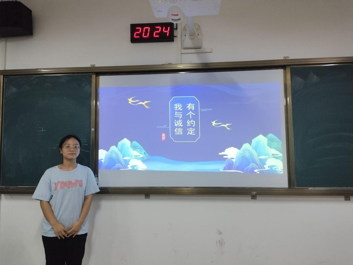 主题班会有序进行,氛围良好,班级同学积极配合。其中生物技术2021班学习委员曾晓雯从“诚信小故事”“诚信的内涵”“国家助学贷款”三个方面分享诚信对当代老员工的重要性。这次“我与诚信有个约定”主题班会的顺利开展,不仅使同学们充分的认识到了资助诚信的重要性。同时也学习到与法律相关知识,增强了法律意识,培养了同学之间的良好品质。