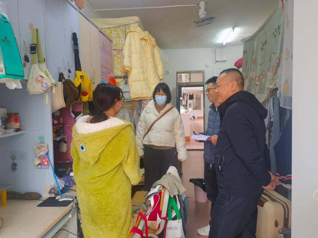 走访过程中,谭志坚仔细询问员工的返校行程是否顺利,关心同学们假期生活的点滴,叮嘱大家尽快调整状态,以饱满的精神投入到新学期的学习中。同时,向员工强调了新学期注意事项,一是要增强员工安全意识。宣传预防传染病的防护知识,提醒员工安全用水、用电,严禁使用大功率违章电器。二是要提高员工防诈识骗意识和能力。尤其提醒毕业生应警惕就业、创业、实习和各类考前培训等方面的骗局和陷阱。三是要增强学风建设。鼓励员工拟订个人学习计划,改进学习方法,遵守学习纪律,打好专业基础,争取在新学期取得更大进步。